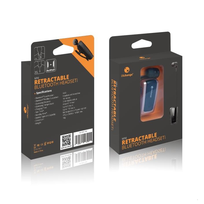 Το Ακουστικό Bluetooth iXchange Mini Retractable διαθέτει ακουστικό με καλώδιο περιέλιξης, εξαιρετική ποιότητα ήχου, και βάρος 18gr. Προσφέρει πολλαπλές λύσεις μεταφοράς χρησιμοποιώντας είτε το κλιπ είτε το strap λαιμού που.Διαθέτει τεχνολογία Multipoint ώστε να μπορείς να συνδεθείς σε δύο συσκευές Bluetooth ταυτόχρονα.